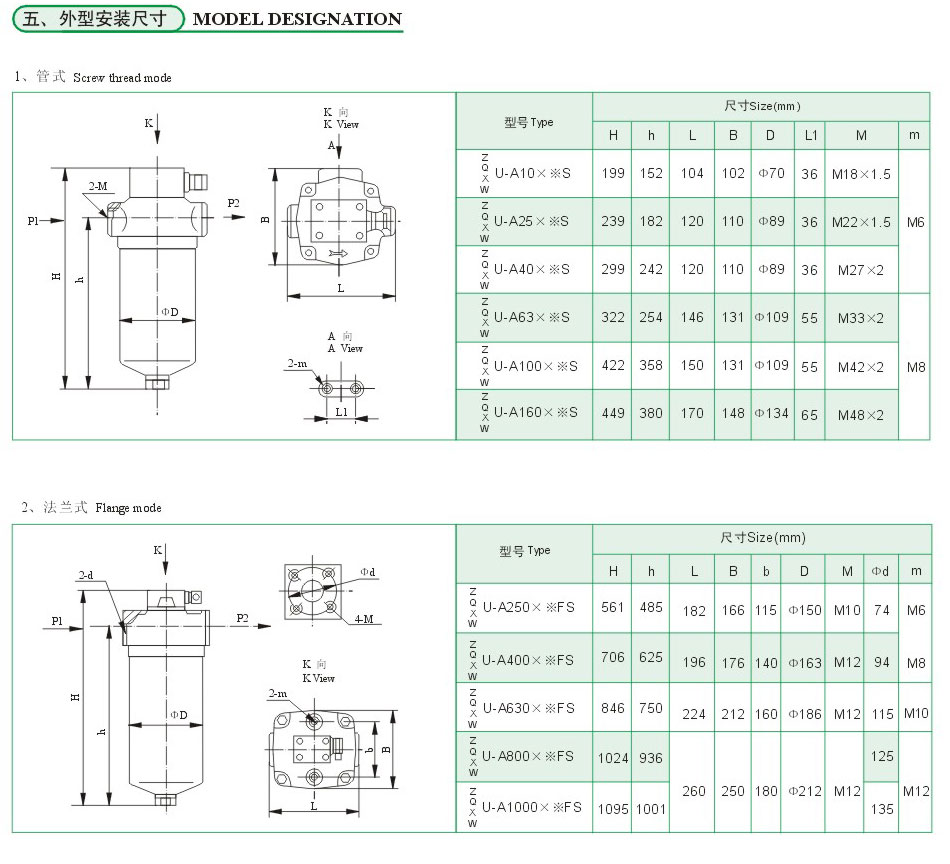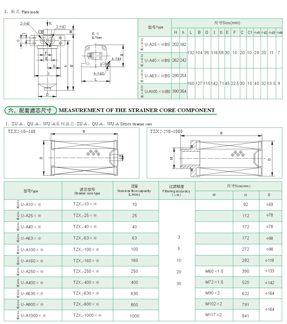 ZU-A.QU-A.XU-A系列回油過濾器安裝在液壓系統(tǒng)的回油管路處.用以濾除油液中諸元件磨損的金屬粉末,密封件磨損的橡膠質(zhì)等.便流回郵箱中的油液保持清潔,以利系統(tǒng)中油液循環(huán)使用。該過濾器分化纖式、紙質(zhì)式和線隙式三種?;w式比紙質(zhì)式過濾效果好,精度高,化纖式和紙質(zhì)式濾 芯堵塞后清洗比較困難,因此必須更換濾芯。該過濾器裝有壓差發(fā)訊裝置,當(dāng)濾芯因污染堵塞致使進出油口壓差達0.35MPa時,便發(fā)出開關(guān)信號,此時應(yīng) 清洗或更換濾芯。